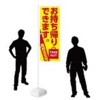 国産 高品質 ワイドサイズ のぼり旗です。 一般的に販売されているのぼり旗よりも幅が50mmも大きな、幅650mmサイズ。 通常市販されている3mポールの横棒(850mm)で設置可能。 弊社製品は下部分を袋加工しているので、ほつれづらく長持ちします。 ヒートカットの製品は四辺が切りっぱなしなので設置時に強い風ではためくと、 布同士がぶつかりほつれやすいです。 商品詳細 ・商品型番:NOB-KR0057 ・のぼり絵柄:お持ち帰りできます TAKE OUT 電話注文可 テイクアウト TAKEOUT お持ち帰り カフェ レストラン 喫茶店 店舗 旗 販促 集客 ・サイズ:1800mmX650mm ・素材:ポンジ ・製造:日本製 ・発送:ご入金確認後4日以内の発送(クリックポスト)