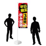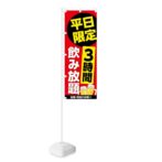 ・のぼり絵柄:平日限定 3時間 飲み放題 居酒屋 飲食店 宴会 旗 販促 集客