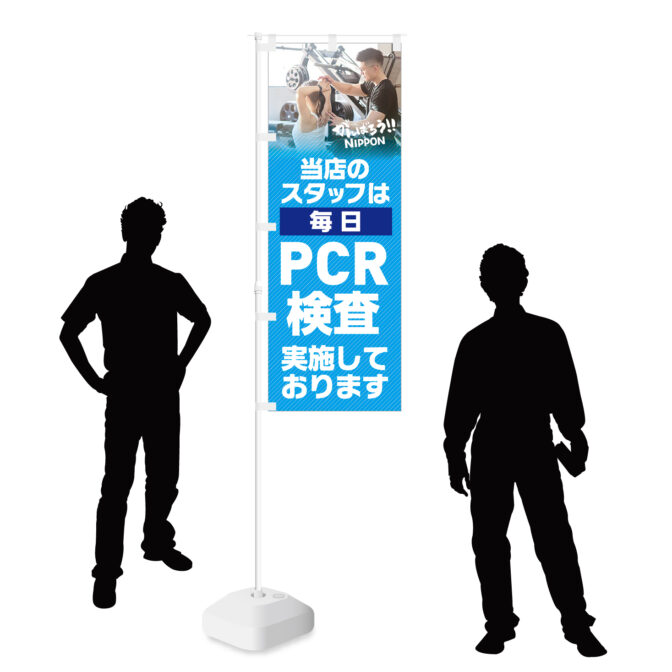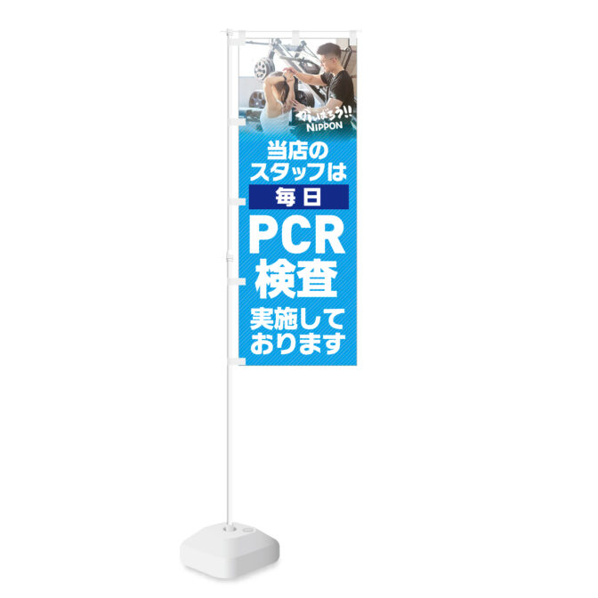 ・のぼり絵柄: 当店のスタッフは 毎日 PCR検査実施しております