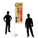 ・のぼり絵柄:GW 連休中だけの特別コース 特別プラン ご予約承り中 ゴールデンウィーク 飲食店 旗 販促 集客