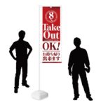 ・のぼり絵柄:Take Out OK お持ち帰りできます テイクアウト TAKEOUT お持ち帰り カフェ レストラン 喫茶店 店舗 旗 販促 集客