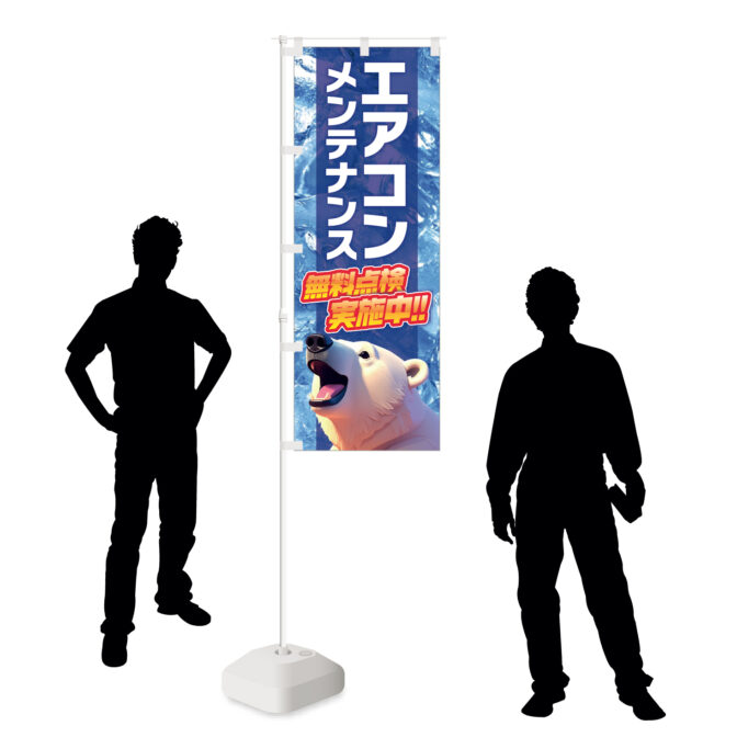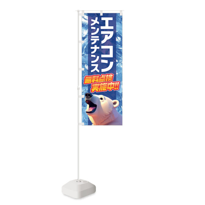 ・のぼり絵柄:エアコンメンテナンス 無料点検 実施中 ガソリンスタンド 旗 販促 集客