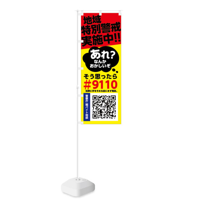 のぼり 【 地域特別警戒実施中 防犯 9110 まず電話 】NOB-KT0967