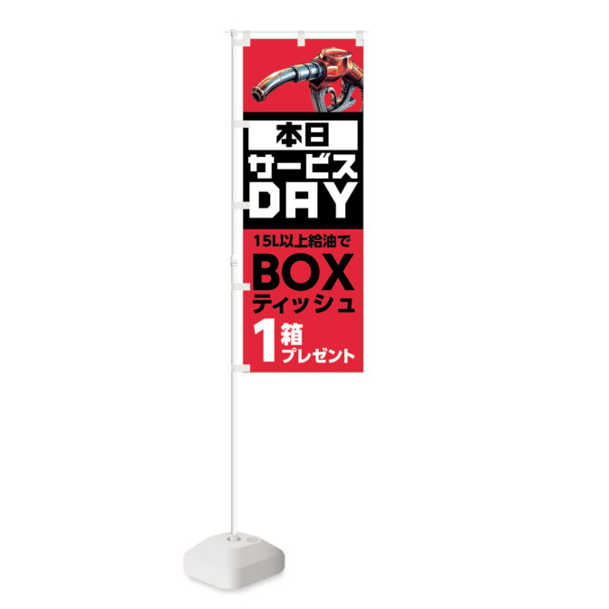 ・のぼり絵柄:本日 サービス DAY BOXティッシュ 1箱 プレゼント 旗 販促 集客