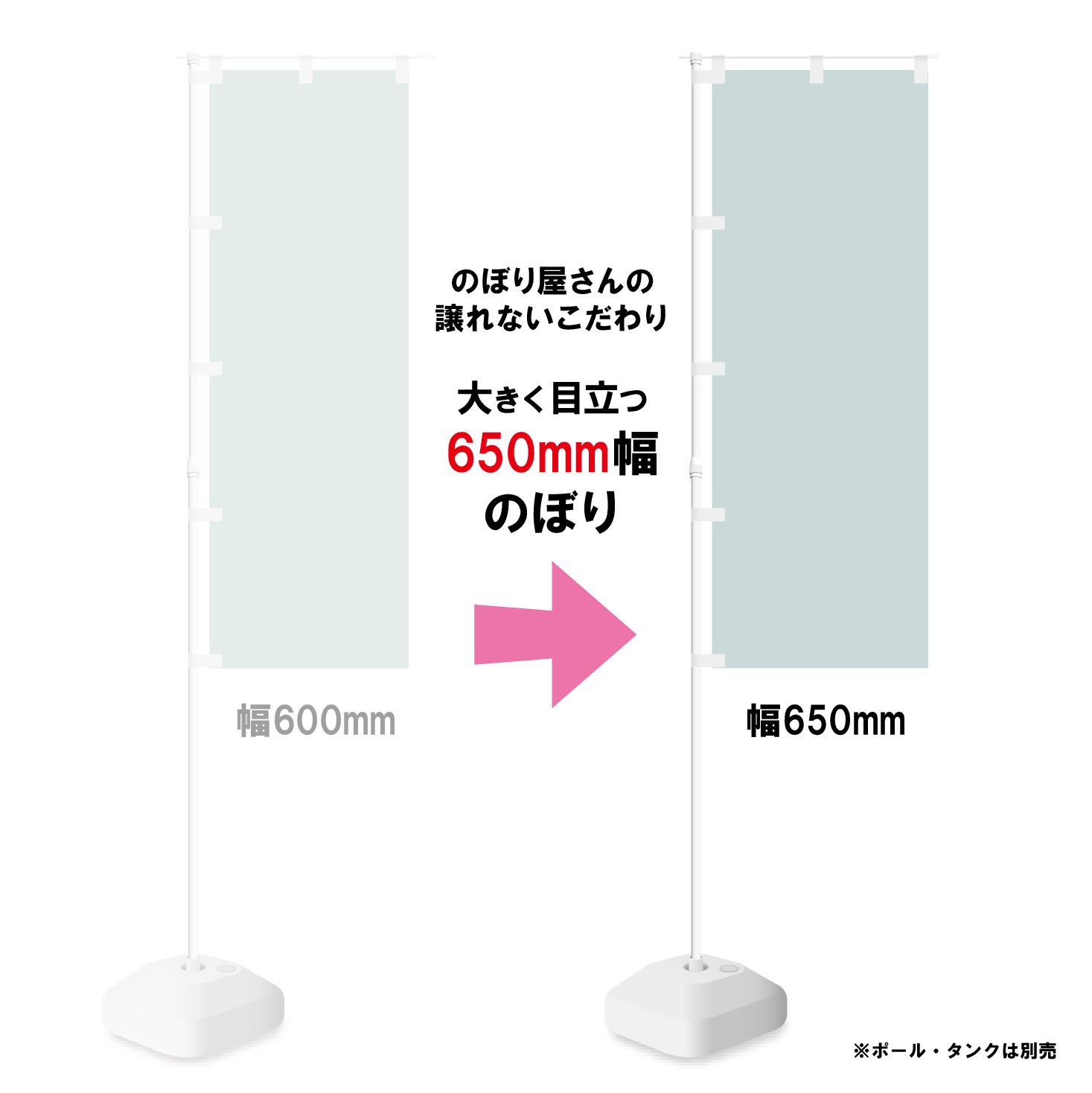 一般的に販売されているのぼり旗よりも幅が50mmも大きな、幅650mmサイズ。