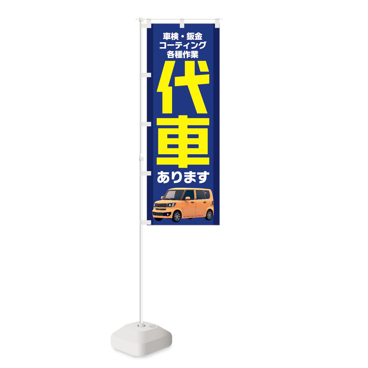 ・のぼり絵柄:車検 鈑金 コーティング 代車 あります 旗 販促 集客