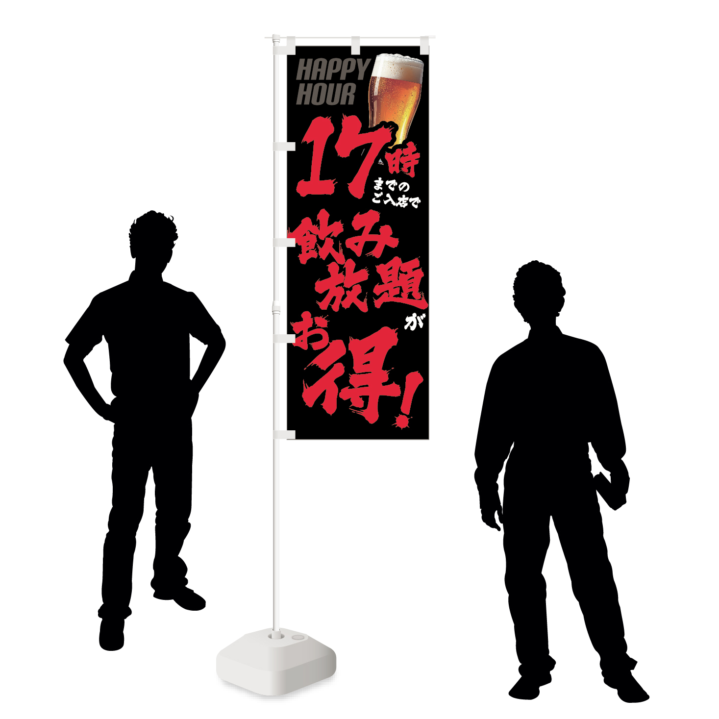 ・のぼり絵柄:17時まで 入店で 飲み放題 ハッピーアワー Happy Hour 旗 販促 集客