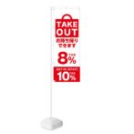 ・のぼり絵柄:TAKE OUT OK お持ち帰りできます TAX 8% テイクアウト TAKEOUT お持ち帰り カフェ レストラン 喫茶店 店舗 旗 販促 集客