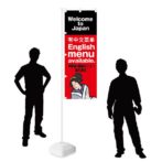 ・のぼり絵柄:Welcome to Japan 中国語 英語メニュー あります 飲食店 レストラン 外国語メニュー インバウンド 旗 販促 集客